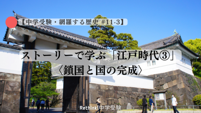 中学受験・網羅する歴史 【網羅する歴史 #11-3】ストーリーで学ぶ「江戸時代③」-鎖国と国の完成〈なぜ徳川幕府は「外の世界」を厳しく管理しなければならなかったのか〉 2026年4月16日 rethink-chuju-socialstudies 中学受験・網羅する社会 – 塾なしで最難関校を目指すための中学受験再考 前回、第2話では、2代将軍徳川秀忠、3代将軍徳川家光の時代に、幕府がどのようにして「戦えない社会」を作ったのかを見ました。 …