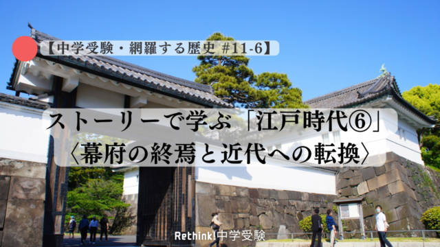 中学受験・網羅する歴史 【網羅する歴史 #11-6】ストーリーで学ぶ「江戸時代⑥」-幕府の終焉と近代への転換〈なぜ江戸幕府は滅び、日本は新しい時代へ進んだのか〉 2026年4月17日 rethink-chuju-socialstudies 中学受験・網羅する社会 – 塾なしで最難関校を目指すための中学受験再考 前回、第5話では、江戸幕府が18世紀後半から19世紀前半にかけて、すでに内側から揺らぎ始めていたことを見ました。(前回の記 …